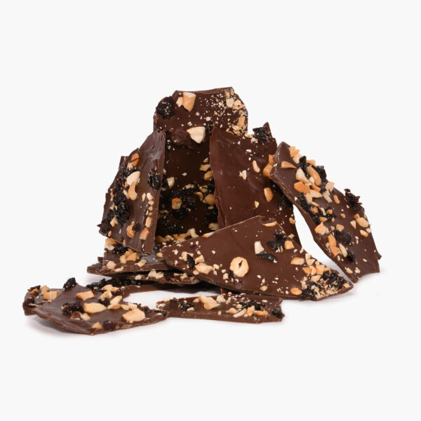 Indulge in the perfect balance of flavors with this handcrafted Belgian dark chocolate bark. Creamy roasted cashews add a satisfying crunch, while dried cherries bring a sweet-tart burst of flavor that beautifully complements the velvety chocolate. Made with 100% natural ingredients, it’s a treat designed to delight your senses and elevate your snack time.